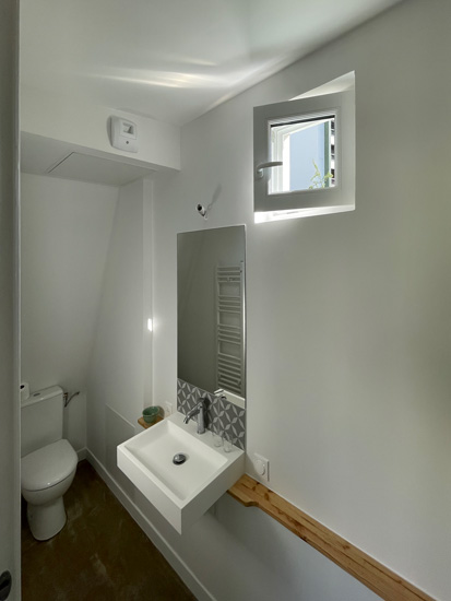 Afin de pouvoir ventiler naturellement la cage d’escalier et d’y faire pénétrer la lumière du jour, un velux sera installé en toiture sur le versant nord.